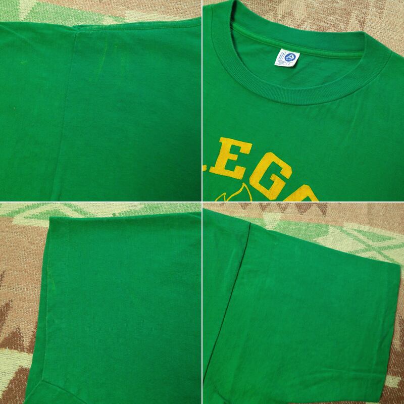 70年代の≪アルテックス(アーテックス)≫Tシャツ。緑ベース100%コットン。オレゴンダックスの両面フロッキープリント、バックは反転した絵になっています。