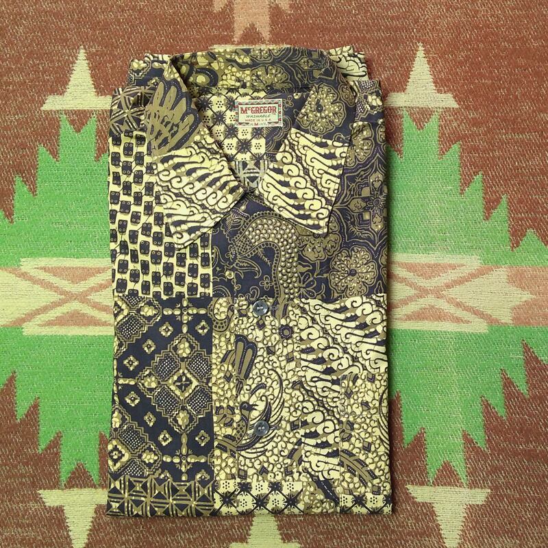 50s McGREGOR Block Print Cotton Shirt(M)DEAD-STOCK