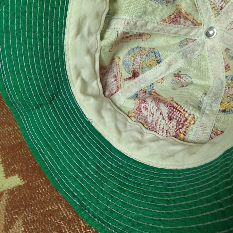70年代の≪シュリッツ ビール≫バケット ハット。総柄プリント、コットンキャンバス生地。つば裏のグリーンも良いアクセントになっています。
