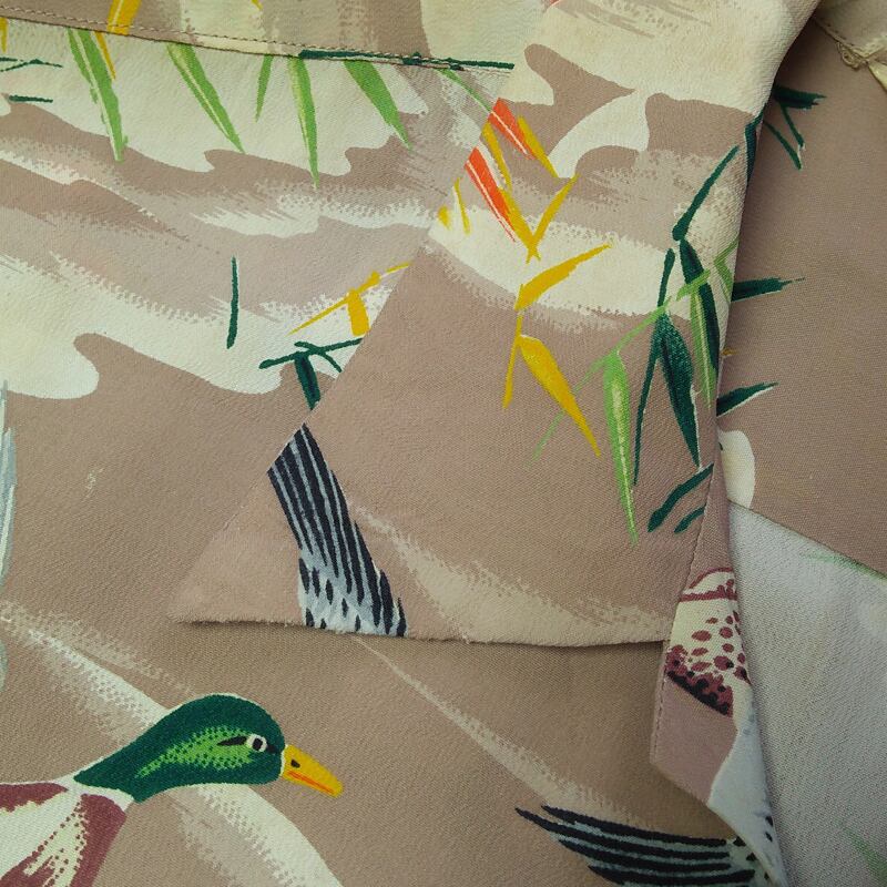 50s Hookano Mallard Print Rayon Hawaiian Shirt(M)