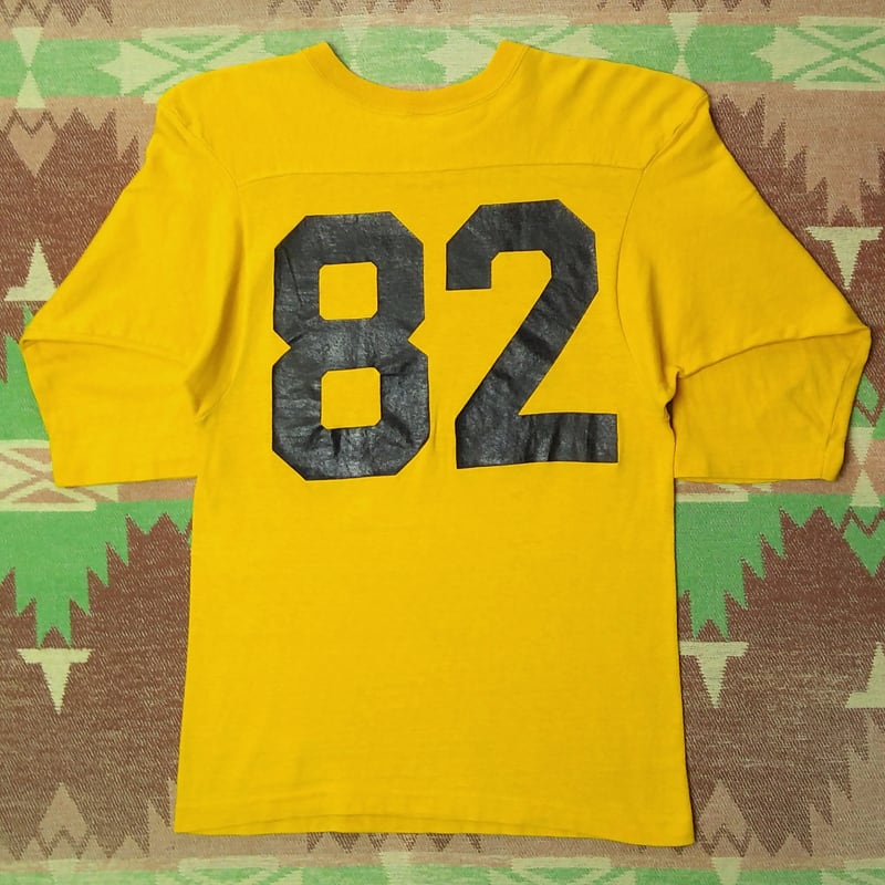 70年代の≪チャンピオン≫バータグ・フットボールTシャツ。黄色(山吹色)、ヘビーオンス厚手の100%コットンボディ。MADE IN USA