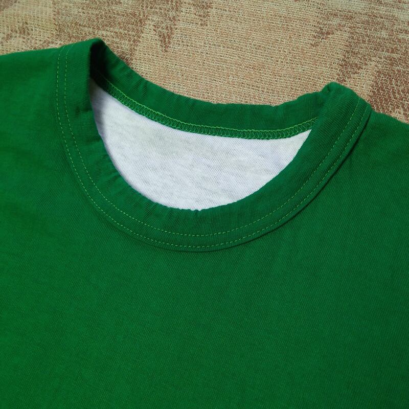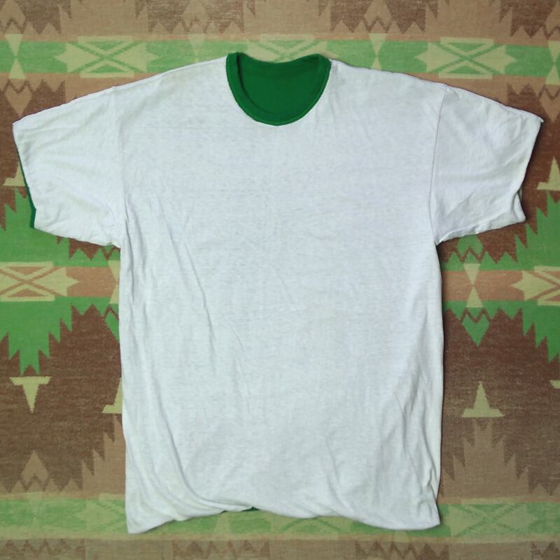 グリーン×ホワイト、100%コットンボディ。ダートマス・モスグリーンではなく標準的なグリーンです。