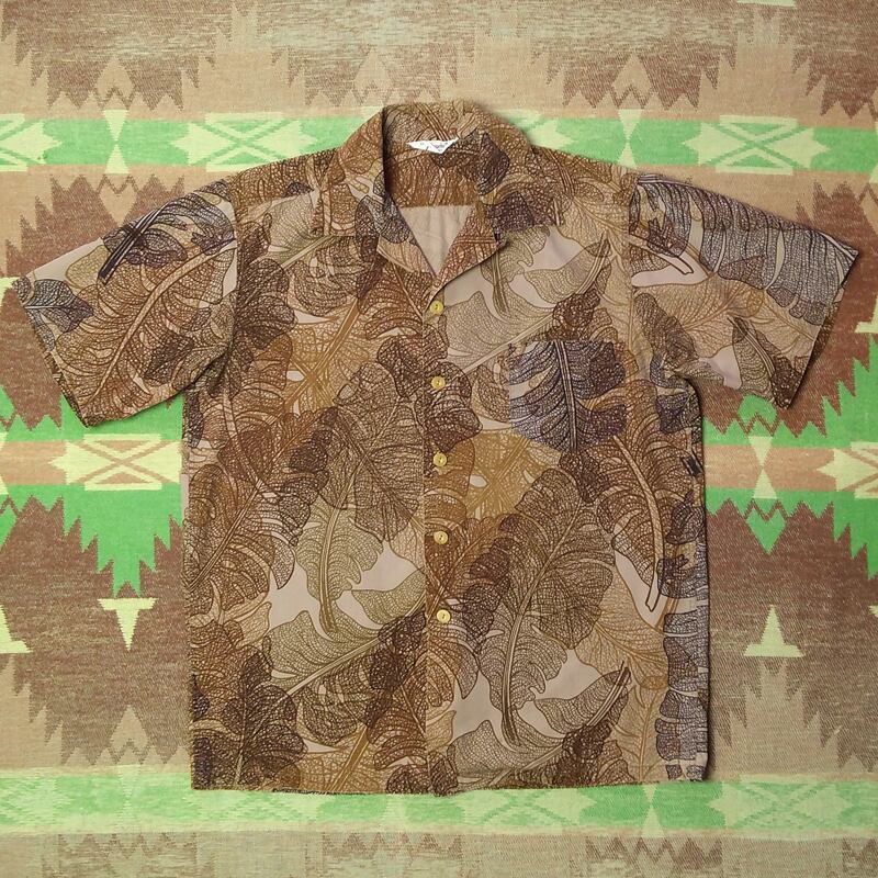 50s~ KAMEHAMEHA Leaf Print Cotton Hawaiian Shirt(M)