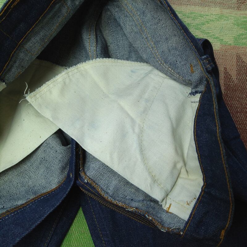 スレーキ等から見ておそらく水通しされていない状態と思います。薄い汚れやところどころ色落ちした部分など見られますが、ひどいものや生地ダメージのない良好なコンディションです。