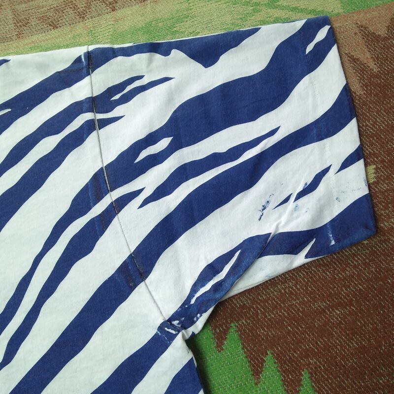 ゼブラもしくはタイガーでしょうか、アニマルモチーフと思われる総柄ラバープリント。ボディは≪スクリーンスターズ ベスト≫、白ベース50%コットン×50%ポリエステル。