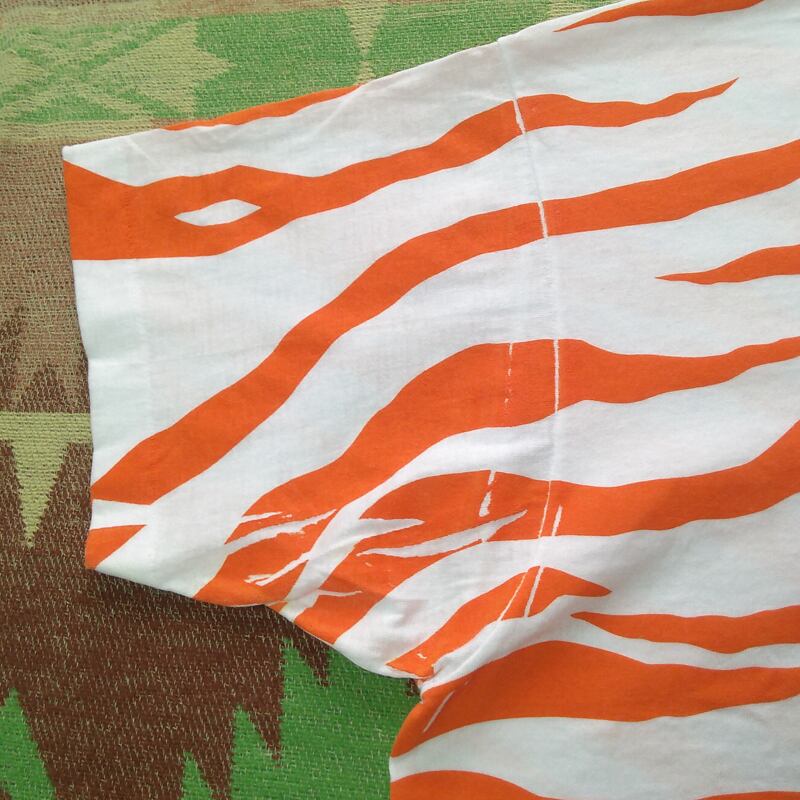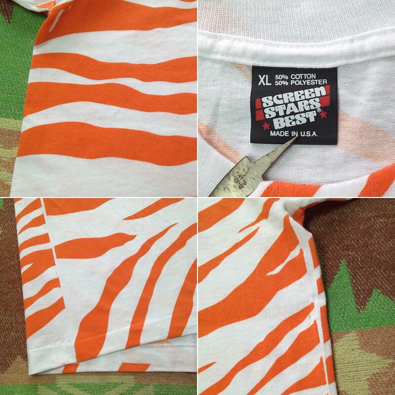 ゼブラもしくはタイガーでしょうか、アニマルモチーフと思われる総柄ラバープリント。ボディは≪スクリーンスターズ ベスト≫、白ベース50%コットン×50%ポリエステル。
