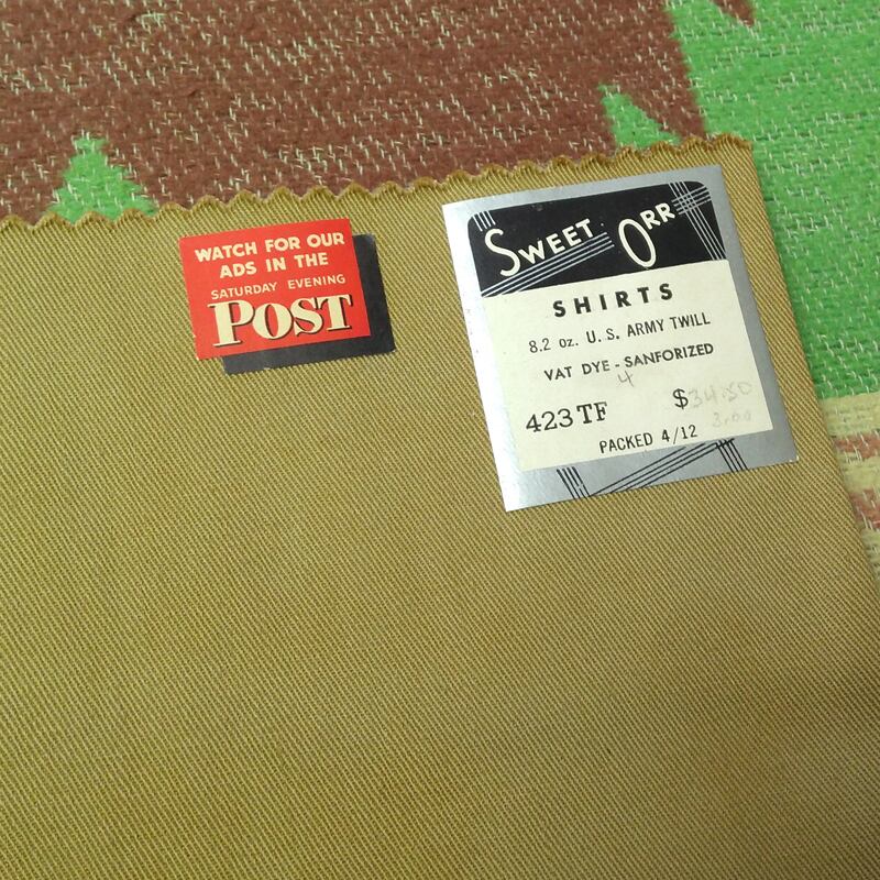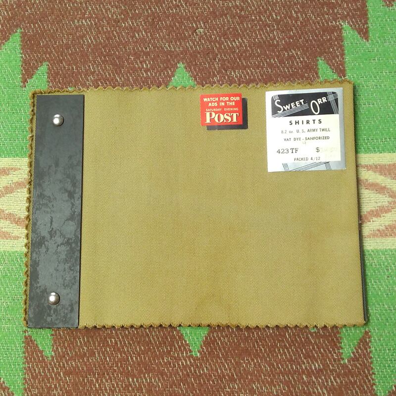 1940s~ SWEET-ORR Salesman Sample Fabric Swatch (SHIRTS ARMY TWILL)