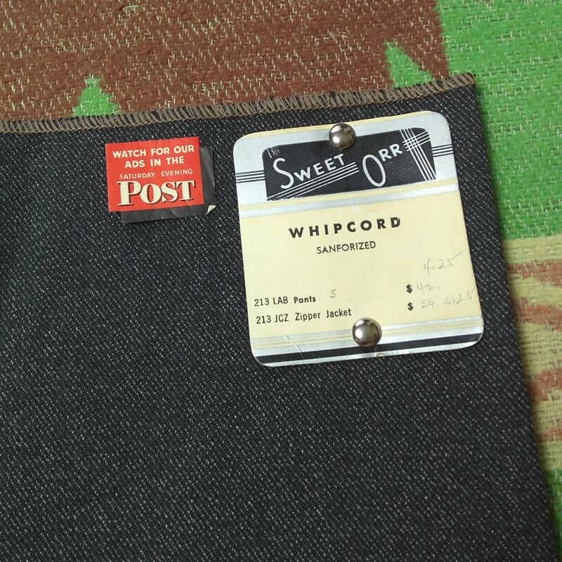 1940s~ SWEET-ORR Salesman Sample Fabric Swatch (WHIPCORD-GY)