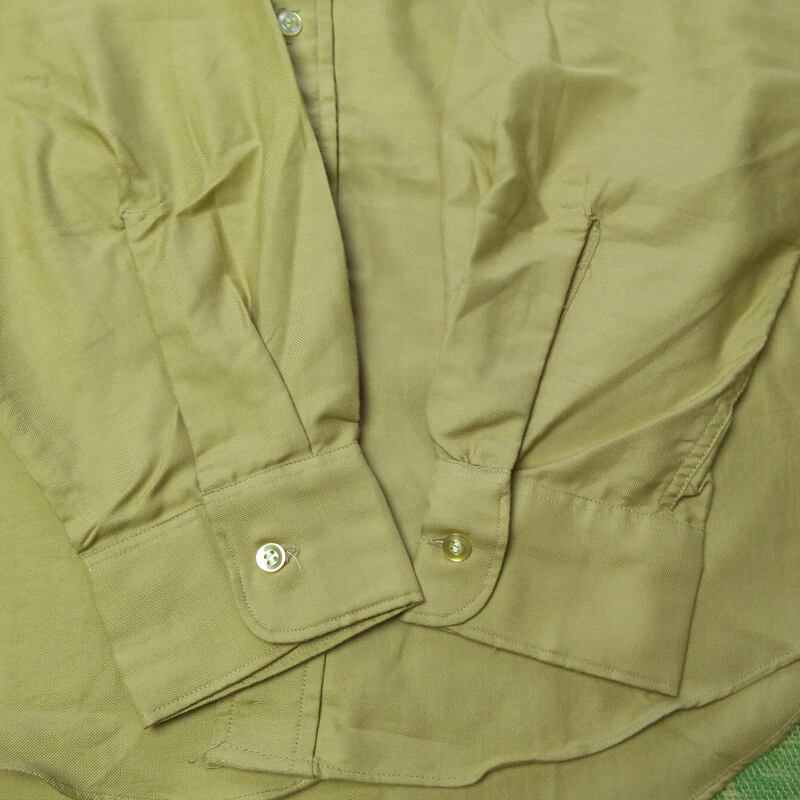 チノクロスのようなカーキ(タン・ベージュ)色が良く、ミリタリーやワーク物などとも相性が良さそうです。トラディショナルなディテールを備えたボタンダウンシャツ、デッドストックです。