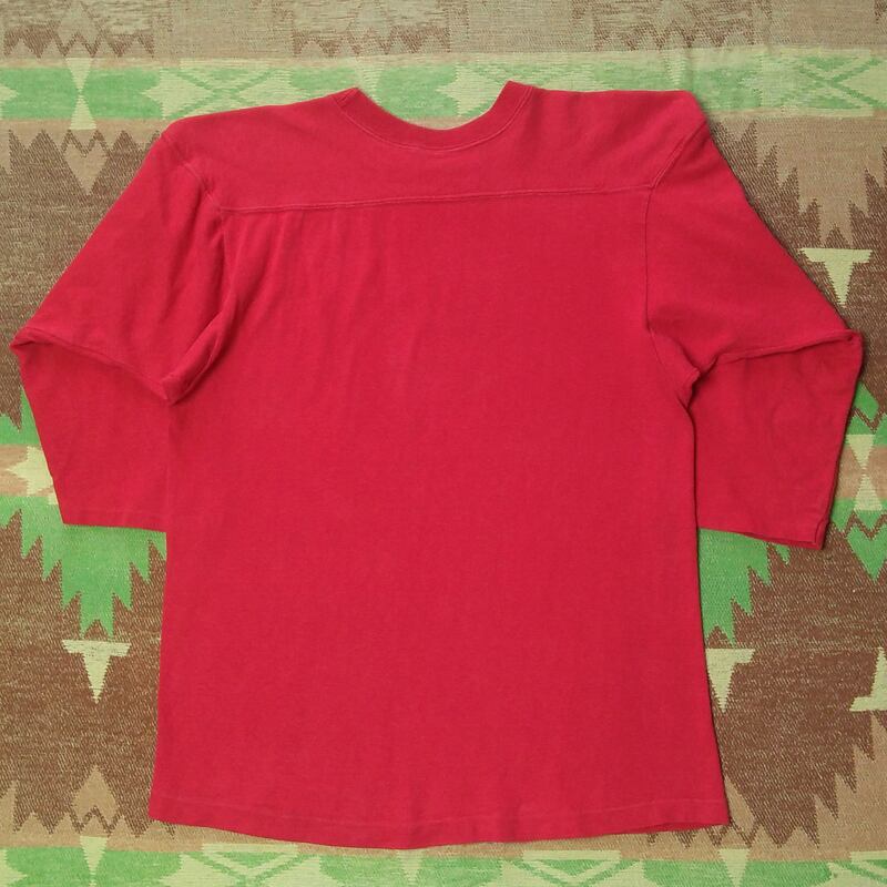 ヴィンテージ好きな方が魅力を感じる、色抜けした赤コットンならではのアジのある雰囲気、ナンバーなしインディアンヘッドのグッドプリントです。