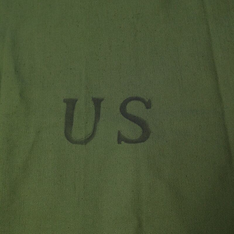 ファティーグ等と同様のオリーブグリーンのコットンバックサテン生地。“US”スタンプ入り。