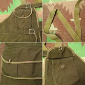 ブラウンのコットンポプリン生地、ポプリンとしてはやや厚みがありしっかりした生地感です。ストラップのバックルはスナップにより着脱できる金具を使用しています。UNITED CARRスナップボタン。