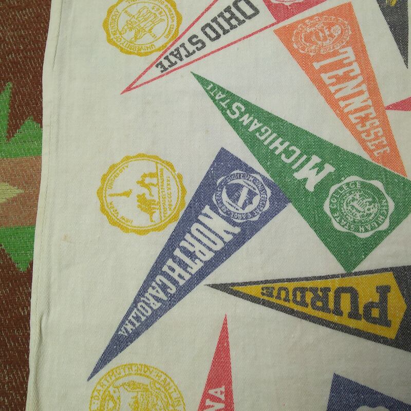 アイビーリーグやARMY・NAVYなどカレッジ(ユニバーシティー)のペナント柄。コットンツイル生地に染み込みプリント。