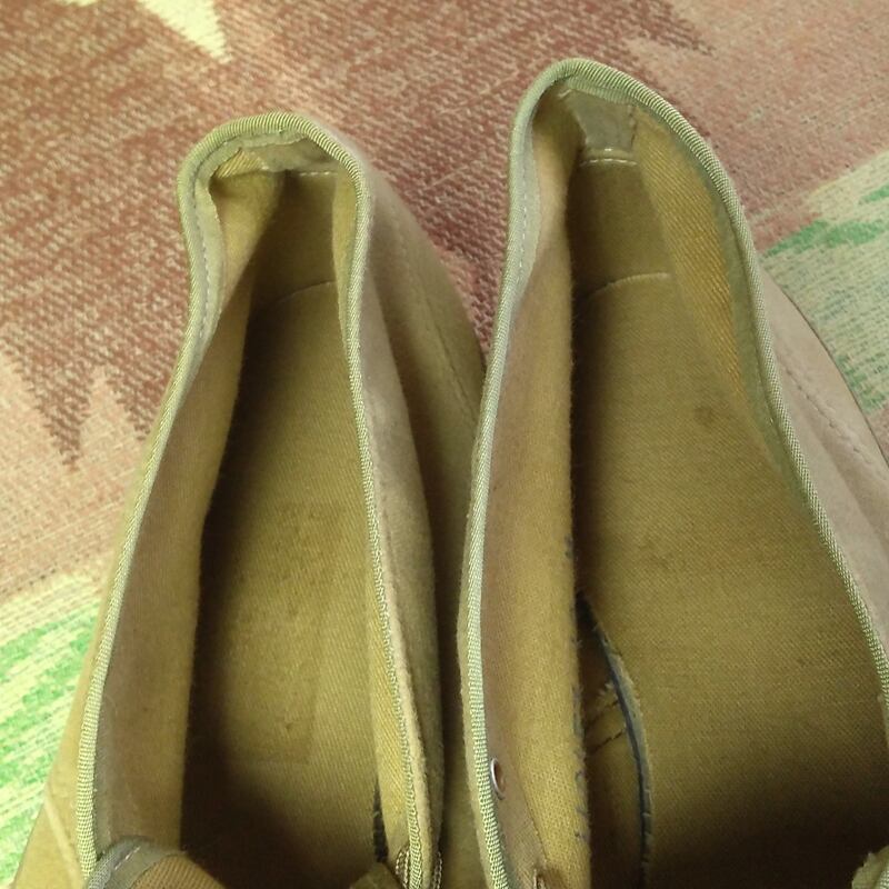 2アイレット、チャッカスタイル。モカっぽいベージュのネルのような起毛素材(フェイクスウェード)。MADE IN USA