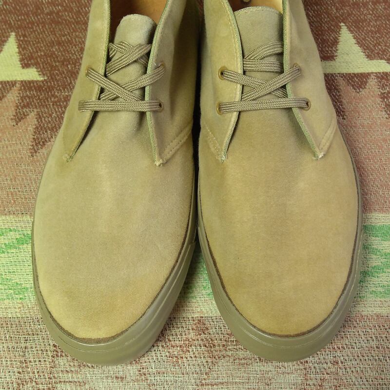 2アイレット、チャッカスタイル。モカっぽいベージュのネルのような起毛素材(フェイクスウェード)。MADE IN USA
