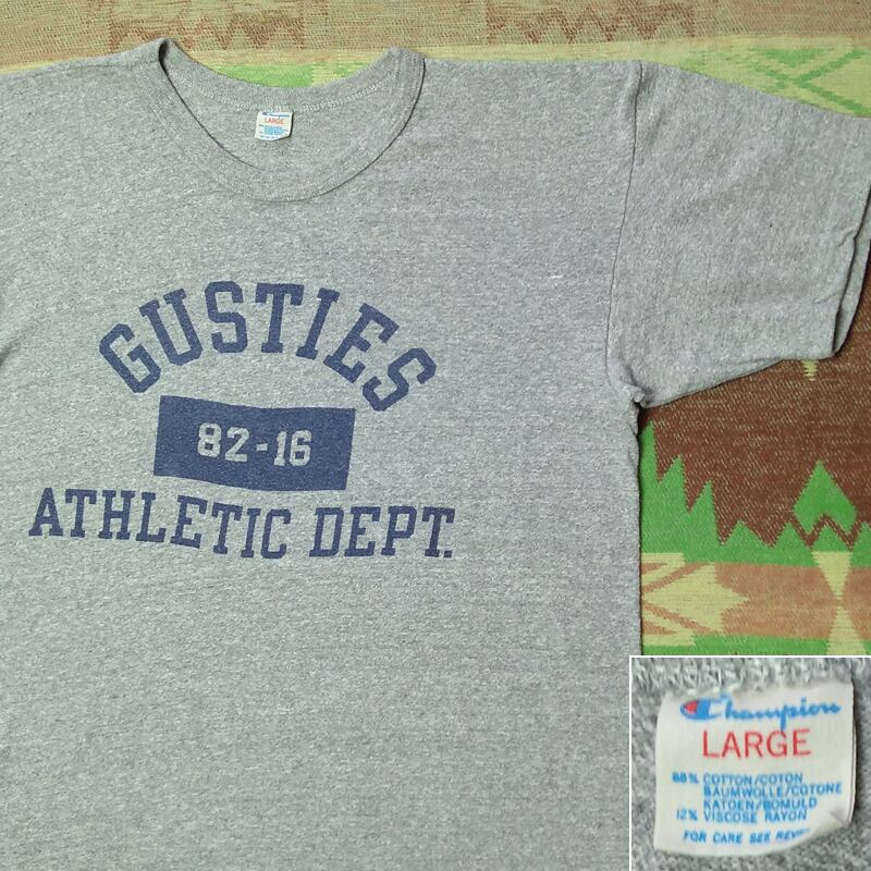 1980s CHAMPION 88/12 Gray Heather GUSTIES Print T-Shirt