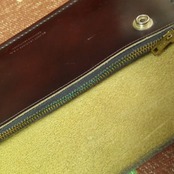 ≪GENUINE LEATHER≫刻印、カウハイドと思われるダークブラウンレザー。見る角度等によって若干濃淡がありコードバンのようなカラーです。使い込んでいくとさらに良い雰囲気になっていきそうです。