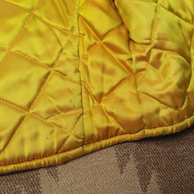 右胸や右袖などに多少のくすみ汚れが見られる程度、使用感わずかな極上コンディションです。ライニングも背面上部に小さなダメージ(画像の小穴とタグで隠れている位置)、袖口や裾に若干のシミ汚れはありますが、全く問題のないピカピカの状態です。