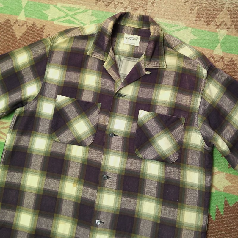 60s TOWNCRAFT Shadow Plaid Print Flannel Shirt (M)