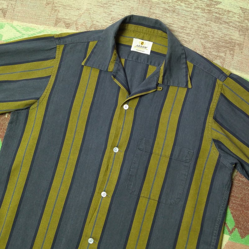 50s ARROW Stripe Cotton Rayon Box Shirt (M)