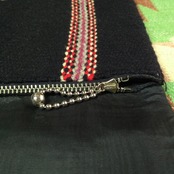 ブラック×レッド×ホワイト×グレー、濃いピンクっぽい赤紫色が入っている点がポイントですかね。サンダーバードのシルバー飾り。TALONボールチェーンジッパー。