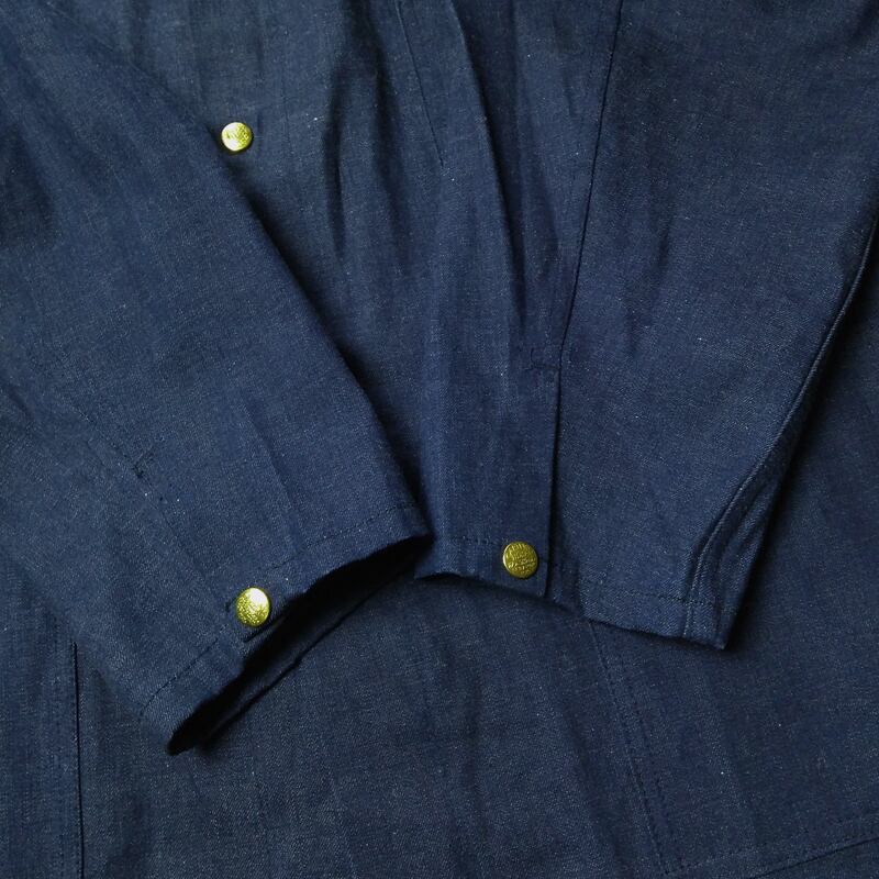 スナップボタン留め・四角いポケットなど、らしさが感じられるディテールです。