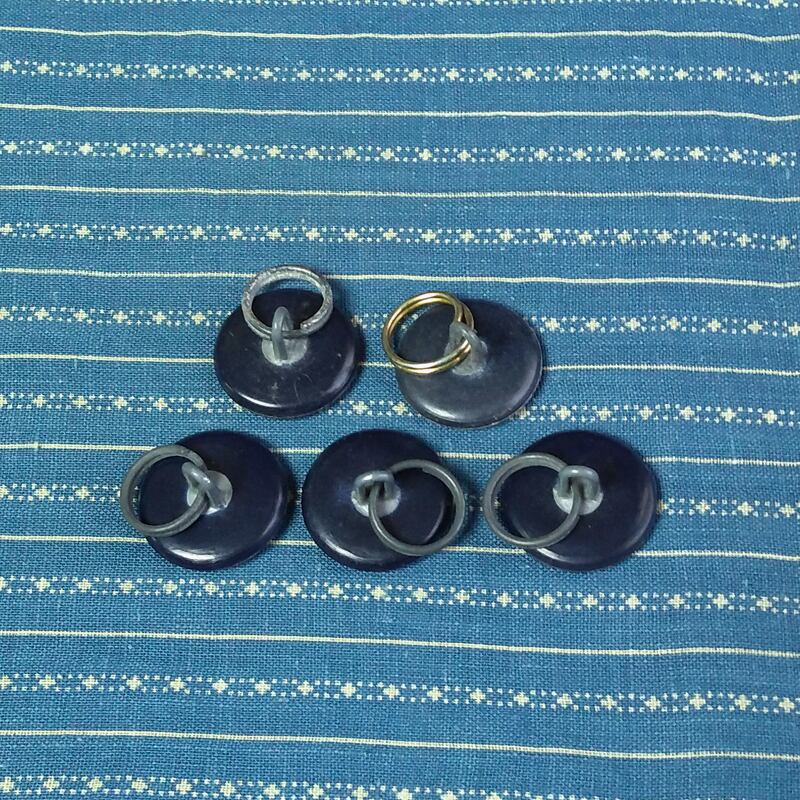 裏面ループがU字のタイプ、リング金具付き(1つはやや新しいもの)。