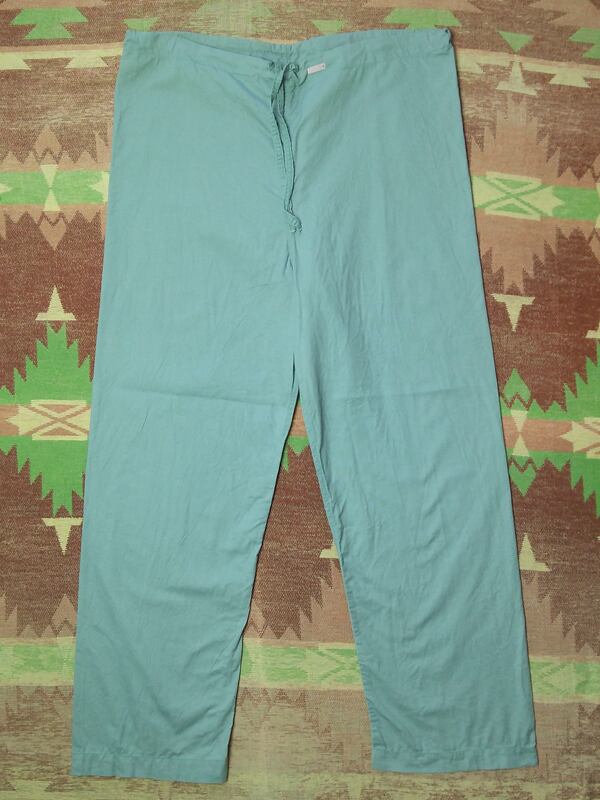 イージーパンツとして、ルームウェア等リラックスウェアに、カットしてショーツに、リメイク用・生地代として、などなど様々に使えるかと思います。ワークウェア好きな方はこの刺繍タグだけでもちょっとぐっとくるかもしれませんね。