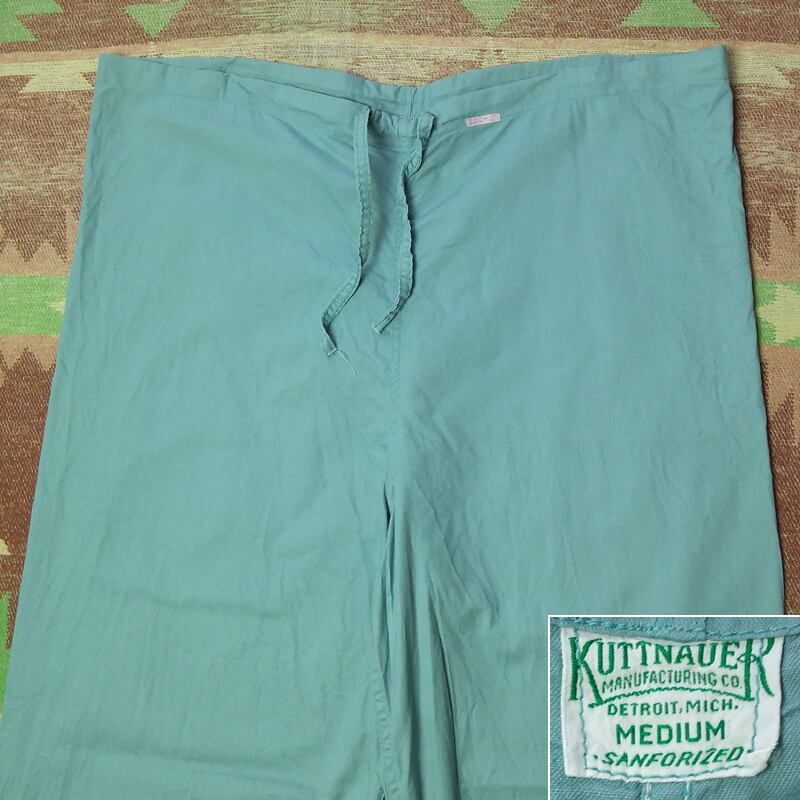 50s~ KUTTNAUER Green Cotton Twill Pants (M) -1-