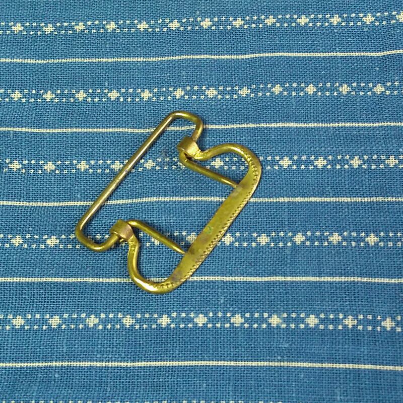 手曲げタイプの針刺しバックル。線が細いブラス製。