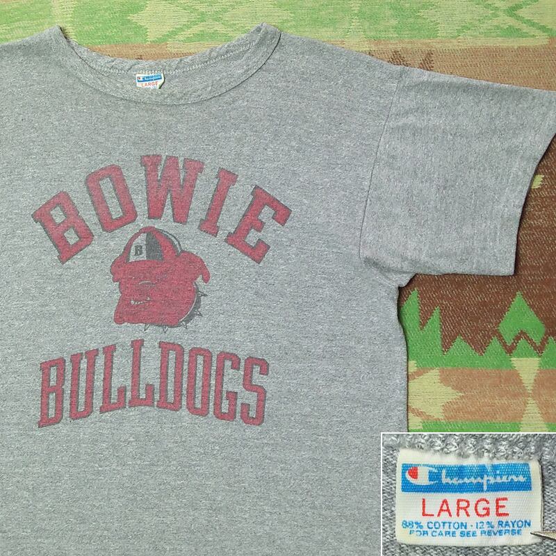 70s Champion BOWIE BULLDOGS Print 88/12 Gray Heather T-Shirt (L)