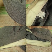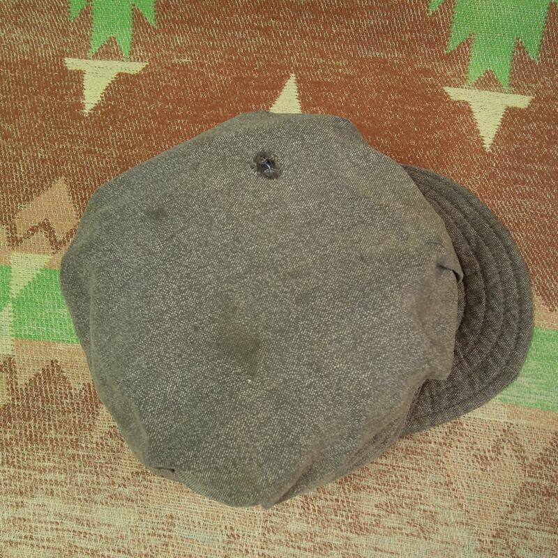 バイザー端に若干の擦り切れ、トップにダメージが1つあります。このままでも気にせず使える方は多いと思いますし、似た生地あるいは全然違う生地で個性を出してリペアされても良いと思います。タグのステッチに若干抜けがあります。スベリのステッチが一部抜けていた部分は縫い直し補修してあります。