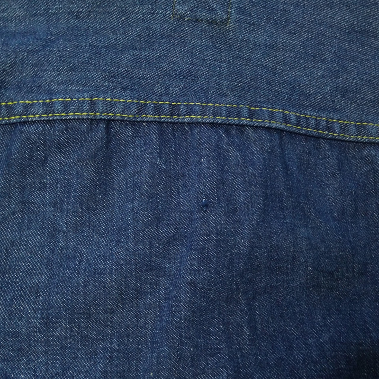 左腹にぼんやりシミ汚れ、襟や袖などに若干の色落ち、背中に小さな織りむらなど見られますが、ノーダメージで良好なコンディションです。