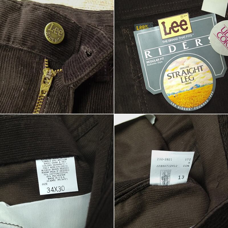 80s Lee 200-2821 Brown Corduroy Pants (実寸W33) DEAD-STOCK