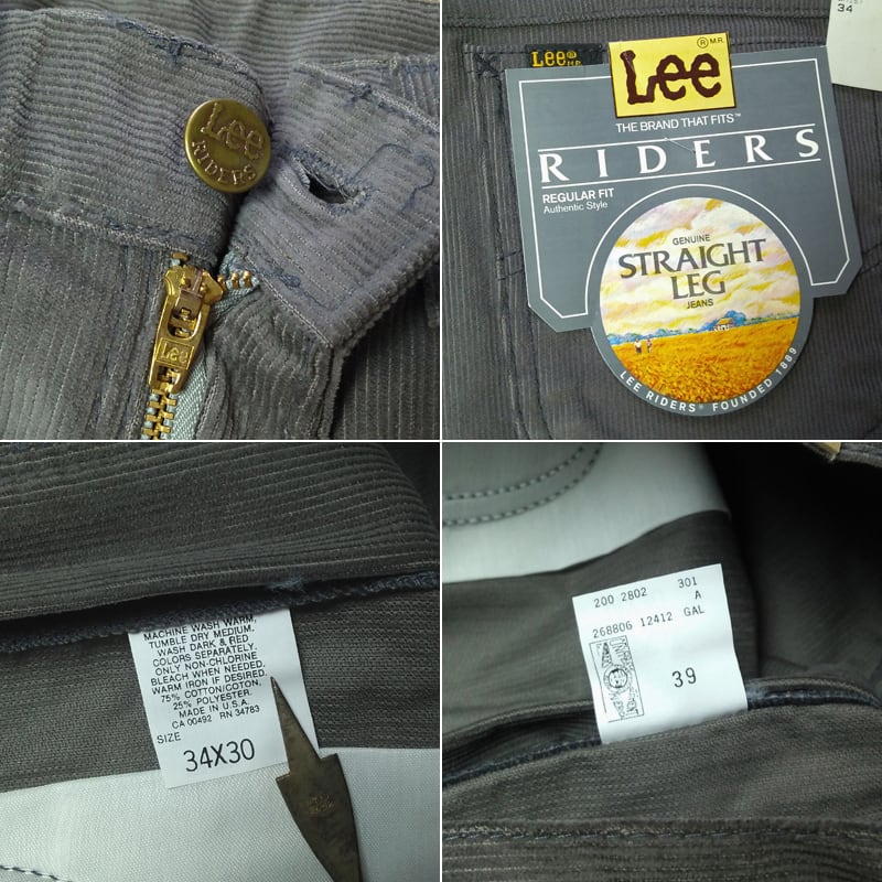 80s Lee 200-2802 Gray Corduroy Pants (実寸W33) DEAD-STOCK