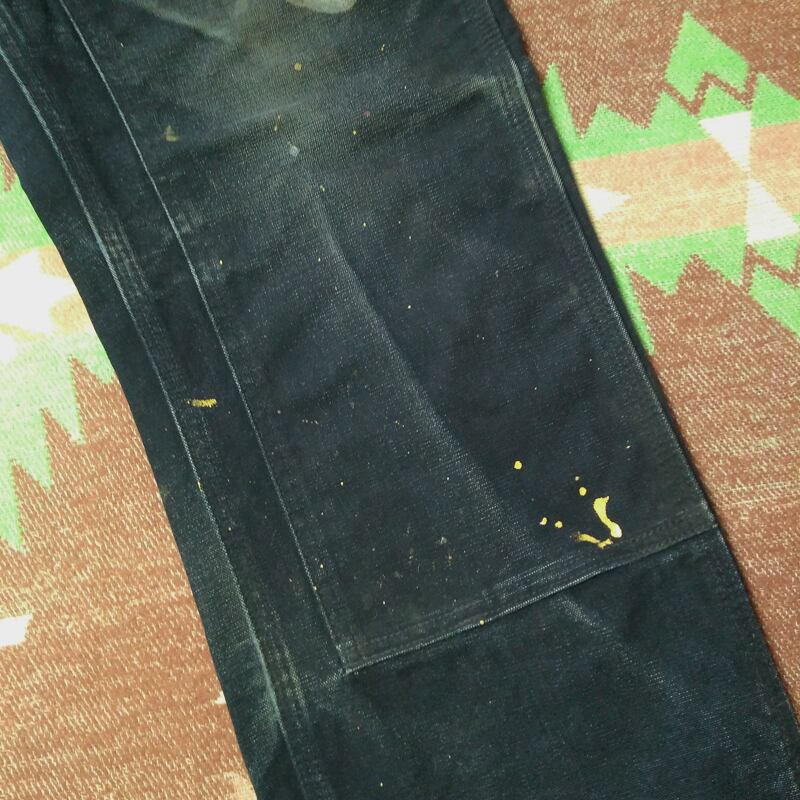 右太ももに比較的大きなダメージ、ポケット口・インシーム・裾周辺などに擦れは見られますが、着用に支障があるようなダメージはありません。シミ汚れや塗料付着は画像にて一目瞭然かと思います。