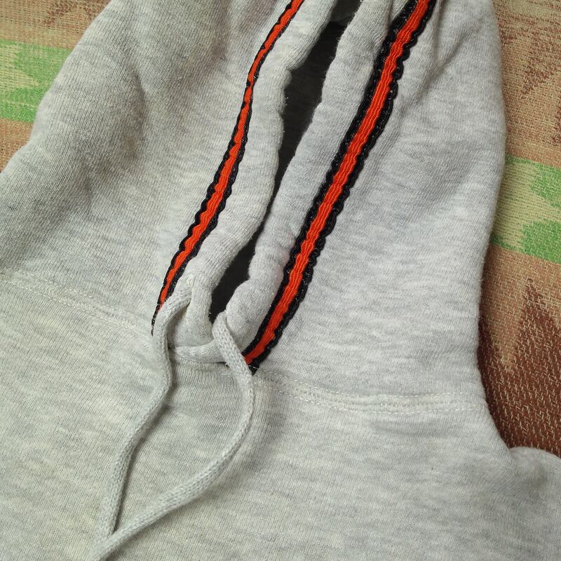 フードとポケットに入るラインはオリジナルの縫製と一緒に縫われています。後付け・カスタムではなく、学校やクラブ単位でのオーダー・別注物でしょう。