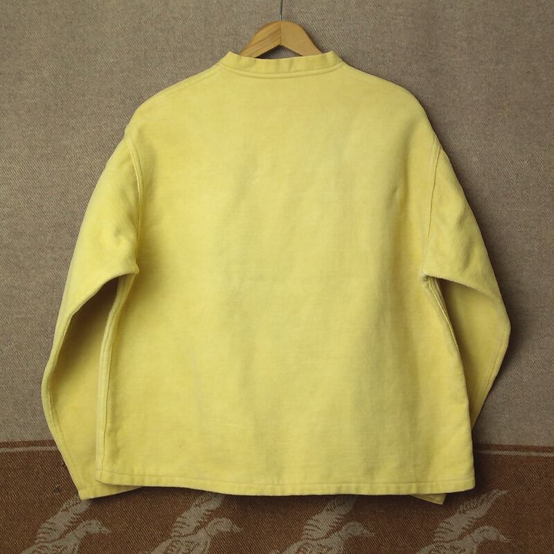 ところどころ薄いシミ汚れ、肩や袖先を中心に全体的な色むら、ネル生地ならではの起毛の丸まりなど感じますが、この時代のこういったアイテムにご理解のある方でしたら、特に問題なく着られるコンディションと思います。