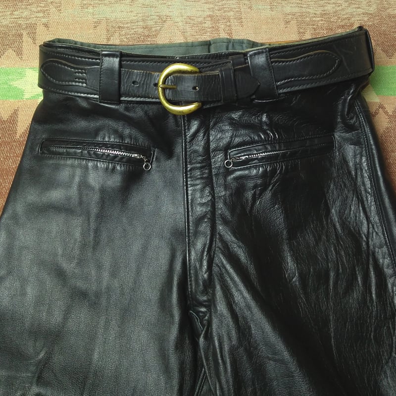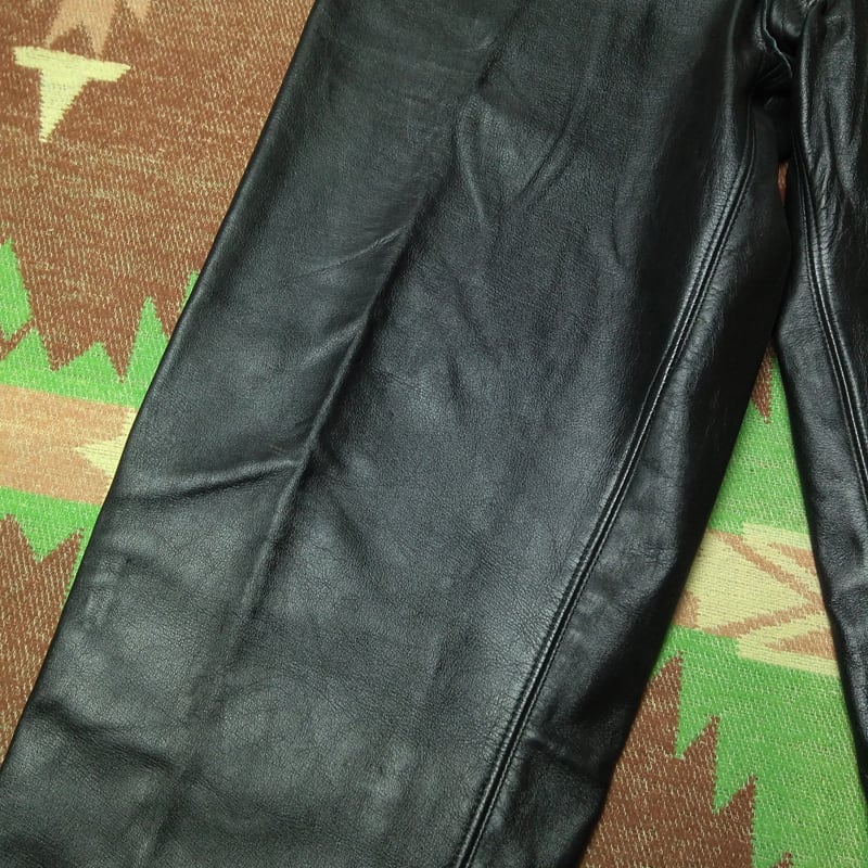 厚すぎないレザー、コンディションの良さもあり柔軟性があってストレスなく穿ける、稀なヴィンテージ レザーパンツです。