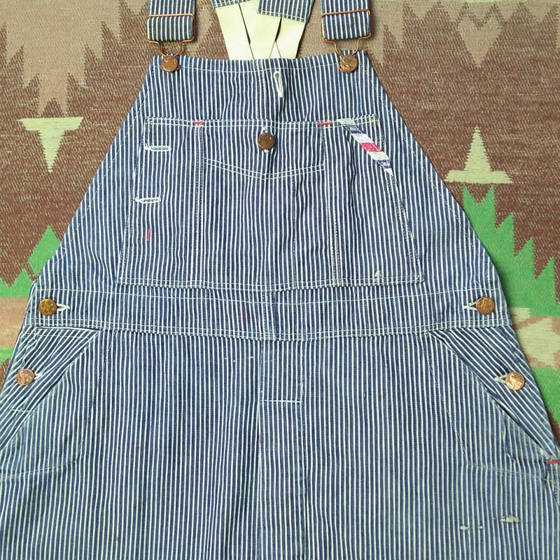 40s~ WINNER Low-Back Hickory Stripe Overalls (実寸W36L29)