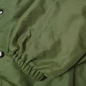 ブラウンがかったオリーブグリーンのナイロンシェル、ヘビーコットンフランネル=シャモア(シャミークロス)ライニング。