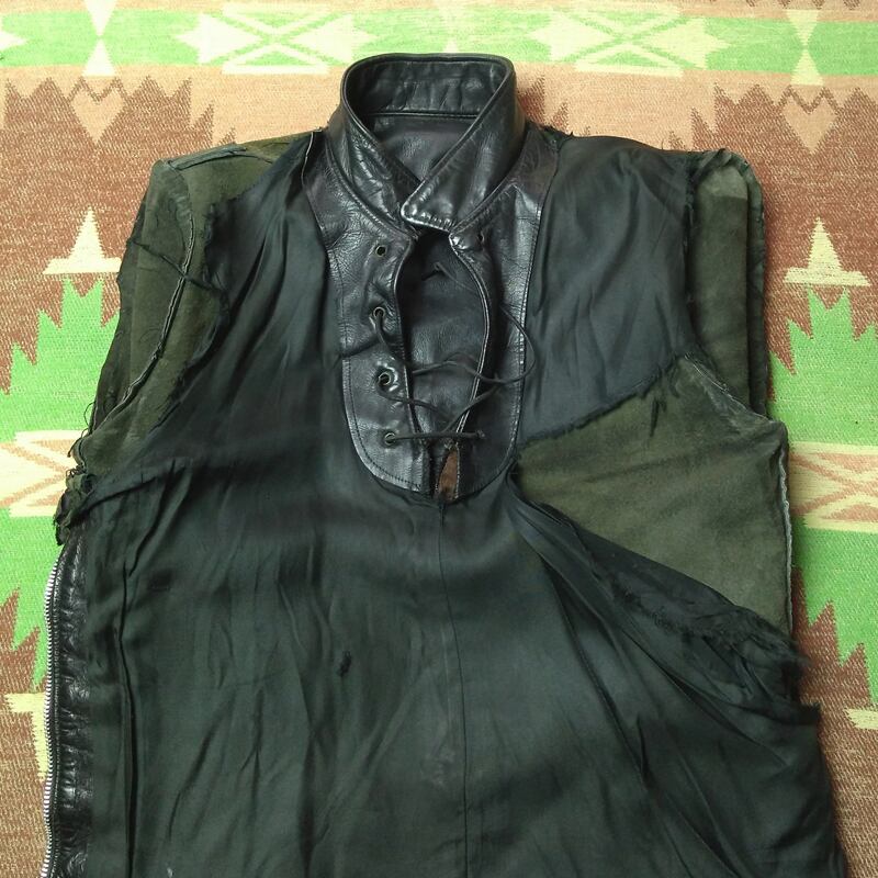 コレクション要素も高いとの判断から当方では手を加えず現状販売といたしました。ご覧のとおりライニングの袖の部分がなくなっていて大きくダメージがあります。