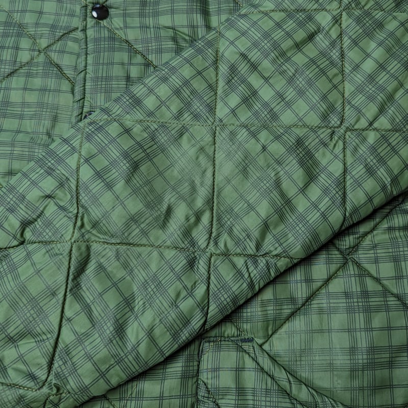 ・ダークグリーンに黒の格子チェック柄ナイロンシェル