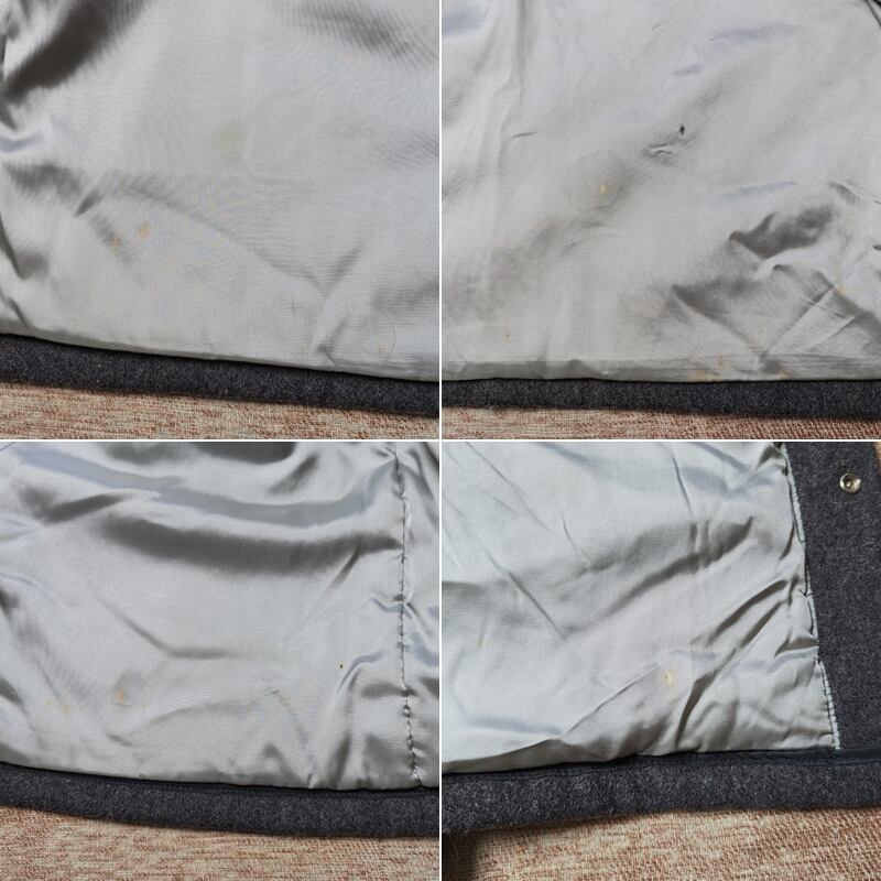 ライニングはヘリンボーン(85%ウール×15%ナイロン)、ボディ下部と袖は薄く中綿入りのアセテートサテン。