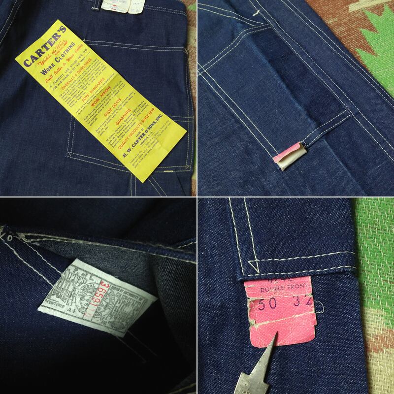 1960s~ CARTER'S DOUBLE FRONTS Denim Work Pants DEAD-STOCK