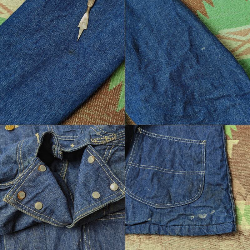薄いシミ汚れやグレーっぽい塗料付着、ボタンの裏等に若干の錆び、ブランケットモデル特有の裾のたるみ、など見られますが、比較的使用感は少なく色濃く残った良好なコンディションです。