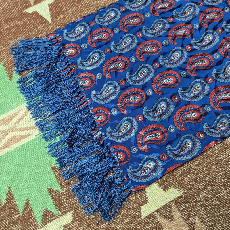 40s~ Atomic Paisley Print Blue Rayon Scarf