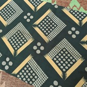 ダークグリーンベースにレモンイエロー/グレーのプリント。