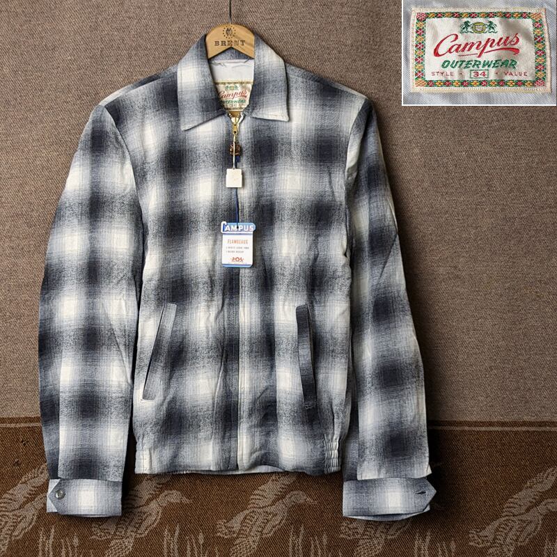 50s~ CAMPUS Ombre Shadow Plaid Rayon Flannel Jacket (34) DEAD-STOCK