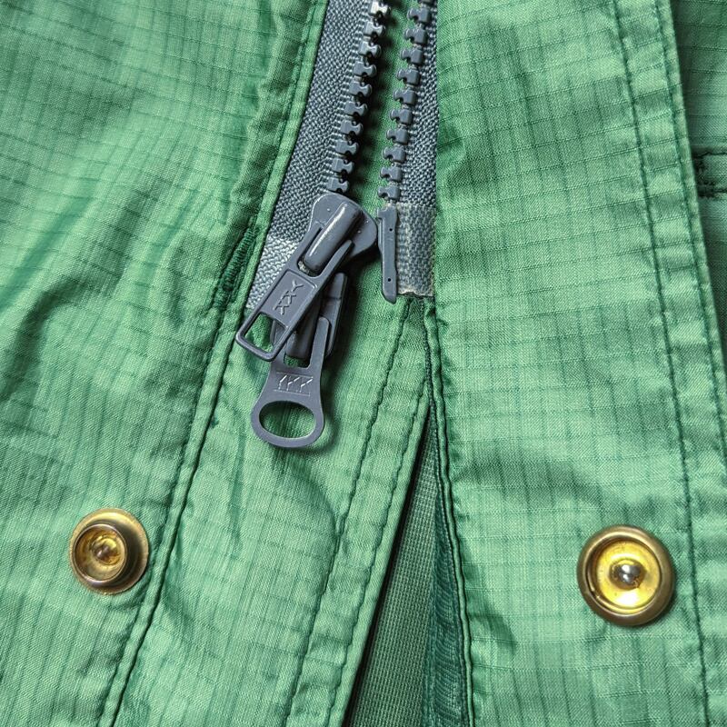 パール調のグリーンカラー、リップストップ ゴアテックス。